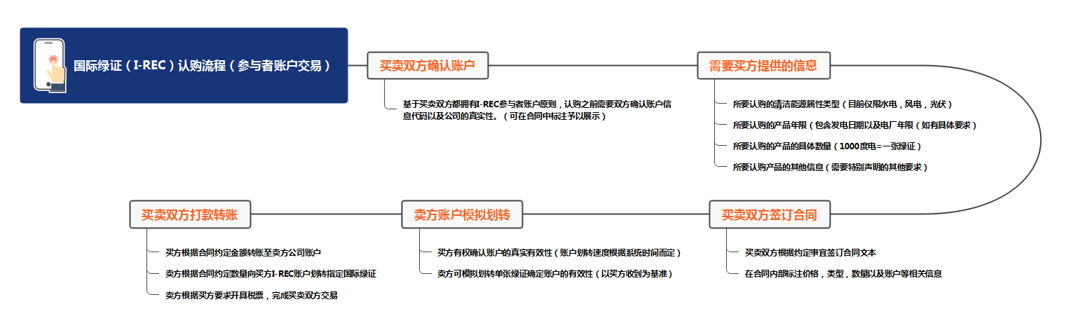 一般國(guó)際綠證(I-REC)申請(qǐng)流程分為兩種,一種是大企業(yè)之間的賬號(hào)劃轉(zhuǎn)操作,一種是為中小企業(yè)代贖回操作。